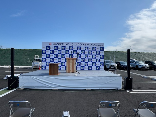 道の駅ほうじょう開業式典において音響一式を担当しました(会場:道の駅ほうじょう特設会場)